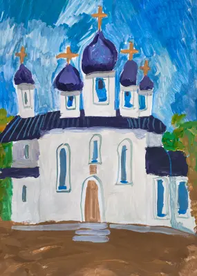История храм Сергия Радонежского начинается с 2000года. Но только к 2014 году. Храм открыли для верующих.Т еперь это не только храм на Рязанском проспекте, но и важный духовный центр. Работа формата А2, тех.гуашь.
