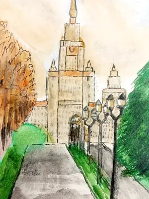 Наша Москва красива при любой погоде, во все сезоны и в любое время суток. Я очень люблю Москву и люблю её рисовать, в том числе и акварелью. Это акварельная картина.