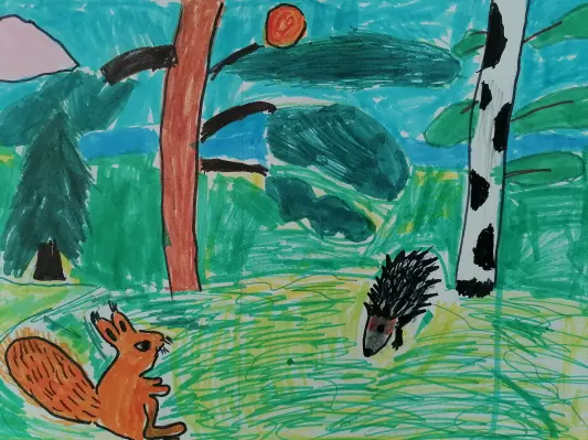Часто гуляем с родителями в парке Вагоноремонт, и там появилось очень много белок. Они очень забавные и не боятся людей. Их можно кормить с рук. Я решила их нарисовать.