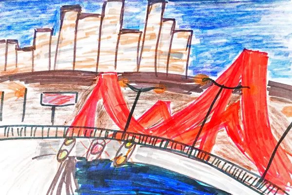Я нарисовал новый мост в нашем районе! Сюда мы ездим на велосипедах и по мосту тоже, стало очень удобно !