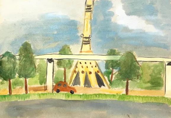 Я изобразил своё любимое место в Москве – вид с озера на Останкинскую башню. Мы часто там гуляем с родителями, братом и сестрой. Недалеко от этого места – мой любимый Останкинский парк.