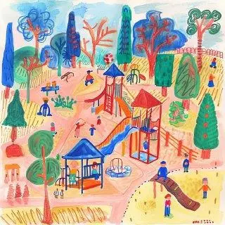 Это мой любимый двор, в котором я живу, тут много моих друзей, разные горки и карусели, еще есть деревья и трава, погода без дождика и очень тепло, небо голубое
