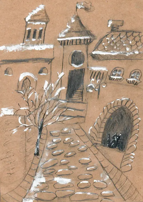По вечерам мы с родителями часто выходим погулять и я часто вижу очень красивые места в своем районе. Тут настолько здорово, что я решила нарисовать улицу, которая рядом с моим домом.