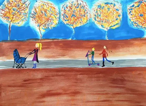 Нам с сестрой купили самокаты, я катаюсь на нем всё свободное время, мы специально ходим в сквер "Марс", там можно разгоняться. Мы с сестрой соревнуемся, кто быстрее. Самокат - это круто.