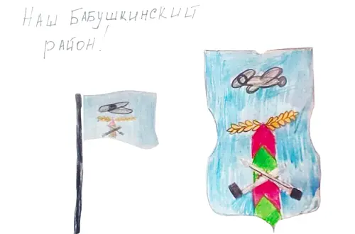 Меня зовут Лиза. Мне 10 лет. Я нарисовала герб и флаг района, в котором я живу, и который очень сильно люблю. Этот рисунок висит у меня над столом, как напоминание, что я живу в самом прекрасном месте!