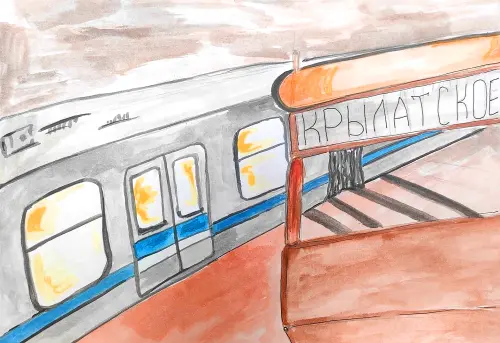Я нарисовал метро «Крылатское», потому что это место, с которого начинается день у многих жителей нашего района. Здесь чувствуется ритм Москвы, но сам район остаётся зелёным и спокойным.