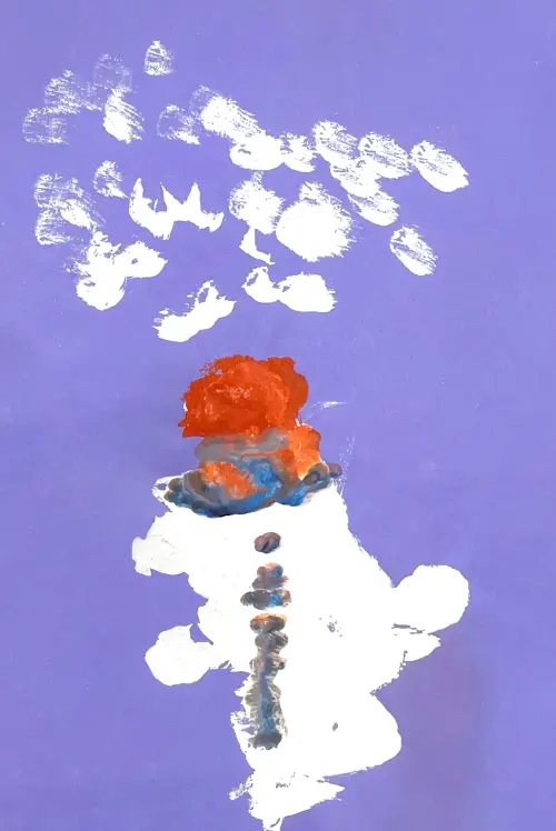 На рисунке, выполненном акварелью, в холодных голубых и серых тонах, изображен заснеженный двор в Коптево. Шапками снега, выглядят особенно уютно. Художник мастерски передал зимнюю атмосферу Коптево.