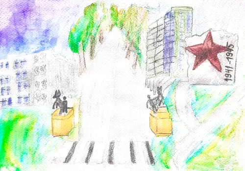 Меня зовут Вероника, мне 7 лет. У нас в районе есть красивый памятник солдатам, защищавших нашу родину. Там очень красиво и всегда много людей останавливаются около него, почтить память