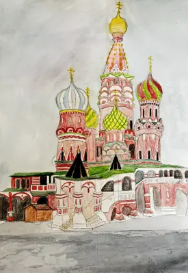 На создание этой картины меня вдохновила прогулка по Красной площади. Собор впечатляет своим разнообразием насыщенных красок, глядя на него сразу хочется запечатлеть его на картине, что я и сделала. Представляю вашему вниманию мою работу «Собор Василия Блаженного».