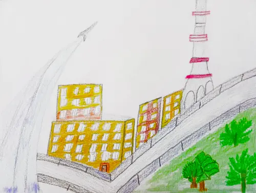 Из окна открывается величественный и впечатляющий вид. В центре внимания – Останкинская телебашня, устремлённая ввысь. Она возвышается над городом, словно устремляясь в небо. Недалеко от телебашни - монумент покорителям космоса. На вершине монумента - ракета. Она словно парит в воздухе. Вокруг памятника разбиты парки и аллеи.