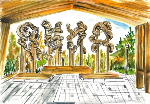 Главное в этой работе – искренность и свежий взгляд ребёнка. Видно, что ему понравилось пространство, где можно гулять и рассматривать необычные скульптуры. Картина не перегружена деталями, зато в ней много эмоций и свободы, как в самом парке.