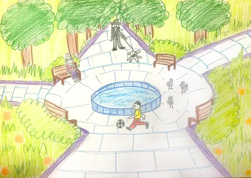 Мой двор – это не просто территория между домами. Это целый мир, наполненный воспоминаниями, звуками и запахами, которые формируют часть моей жизни. Парк - это живой организм, который меняется в зависимости от времени года. Весной он расцветает яркими красками, летом дарит прохладу в тени деревьев, осенью одевается в золотой наряд, а зимой укрывается белым покрывалом снега.