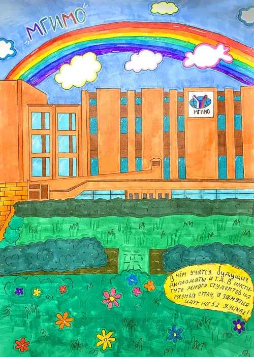 В университете МГИМО учились мой старший брат и двоюродная сестра. Мой папа как-то рассказывал мне, что выбор района для нашего проживания также связан близостью к этому учебному заведению. Я слышала от своего брата много интересного об учёбе в университете, о его традициях и истории. Поэтому я посвятила свой рисунок этому университету. Я горжусь, что МГИМО находится в моём районе.