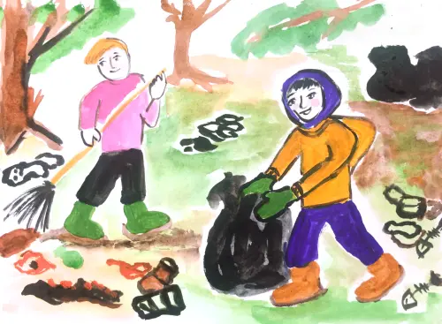 Мы с папой каждый год ходим на субботники, приводим в порядок территорию парков и скверов после зимы, собираем граблями старую листву с газонов и всякий мусор.