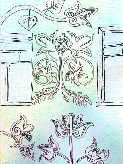 На фасаде «Доходного дома» изящно выделяется белая лепнина, создающая гармонию со светлым оттенком «тиффани» на стенах. Изящные рельефы и декоративные элементы подчеркивают классический стиль здания, придавая ему особую элегантность и изысканность, а причудливые образы экзотических цветов будто бы сошли с картин художников раннего Ренессанса. Светлое «тиффани» создано мягкий фон, который прекрасно контрастирует с белыми деталями, подчеркивая их тонкую работу и художественный вкус.