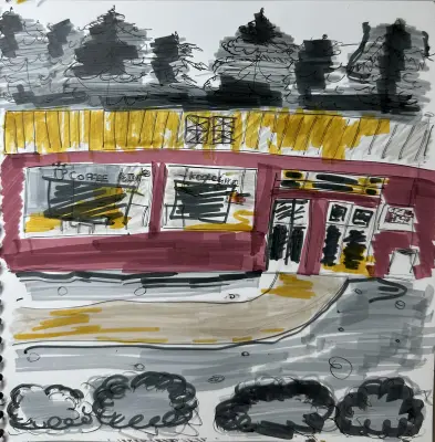 Рисунок нарисован на пленэре в технике быстрого рисунка - скетча.