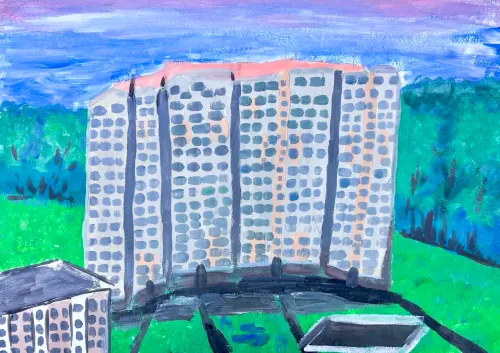 Северный район-самый красивый для меня! Я так рада жить здесь вместе с семьей! Особенно мне нравятся летние пейзажи нашего района. Я нарисовала закат, такая картина вдохновляет меня каждый день.