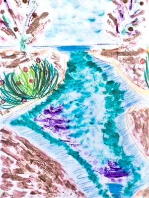 На моей картинке речка, она такая красивая! По ней плывут уточки, а на берегу растут большие деревья. Я люблю гулять у речки и пускать кораблики, и кормить уточек. Уточек всегда много.