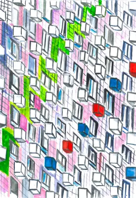 Будущее, как куб, многогранно! Почему куб? Игрушка детства, всё с неё начинается. Кубик за кубиком, кирпич за кирпичем, дом за домом. Один куб за другим, и будущее как куб. И рассматривая эту картину, можно сказать, что она как куб. Как ни повернешь, она со всех сторон одинакова.