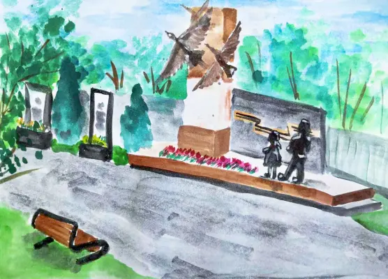 На рисунке изображена аллея в честь 70-летия Победы в Великой Отечественной войне в посёлке Ватутинки. Главное место в парке занимает монумент «Воинам, павшим в Великой Отечественной войне» (открыт 11 сентября 2020 года, скульптор — Сергей Сережин), который как раз и изображен на рисунке. Это место буквально пронизано историей и памятью бывшего военного гарнизона.