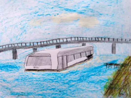 Я живу в Ярославском районе. Мне очень нравится наш район, здесь много отличных площадок для отдыха и игр и много зелени. В своей работе я изобразил прогулку на теплоходе по реке, в которую мы недавно отправились вместе с родителями.
