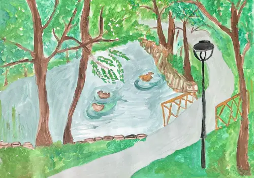 В нашем районе есть очень красивый парк, называется «Яуза». Мы с бабушкой часто ходим гулять в этот парк. В реке там обитают уточки. Я люблю их кормить.