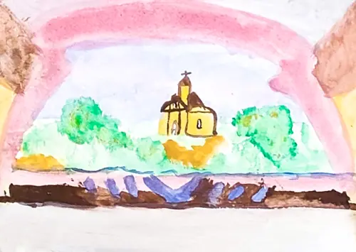У нас очень красивое метро в Москве. Много новых станций открывается, и теперь любой уголок Москвы удобен для проезда. Недалеко от меня находится станция «Марьина Роща». Я решила нарисовать одну из мозаик, которыми украшена станция «Марьина Роща» при выходе на Сущевский вал.