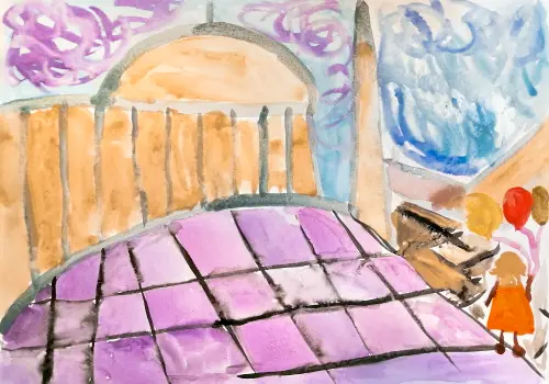 На рисунке изображен парк культуры и отдыха имени М. Горького в Москве. Это одно из самых популярных мест отдыха в столице. В выходные дни я очень люблю вместе со своей семьей гулять и проводить вместе время в этом парке.