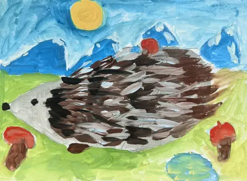 Каждое утро с первыми лучами солнца ёжик выбирается из норки. Его любопытные глазки-бусинки осматривают окрестности, а острый носик принюхивается к лесным запахам. В парке тихо — только птицы щебечут да листья шелестят.