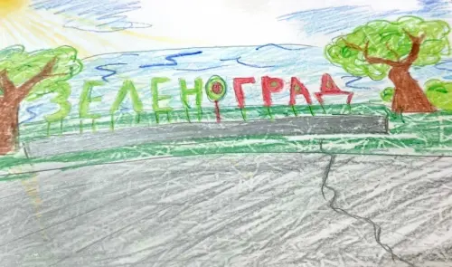 Когда мы с родителями переезжали в Зеленоград, первое, что я увидел -это название города, и оно отложилось в моей памяти. Именно этот рисунок я нарисовал в первые часы