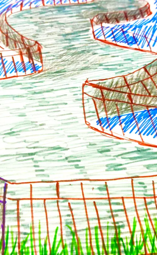 Все мы любим гулять. Моим самым любимым местом для прогулок является Парк Победы. Он захватывает своей красотой, просторами и живописными тропинками. Именно их я и изобразила на рисунке