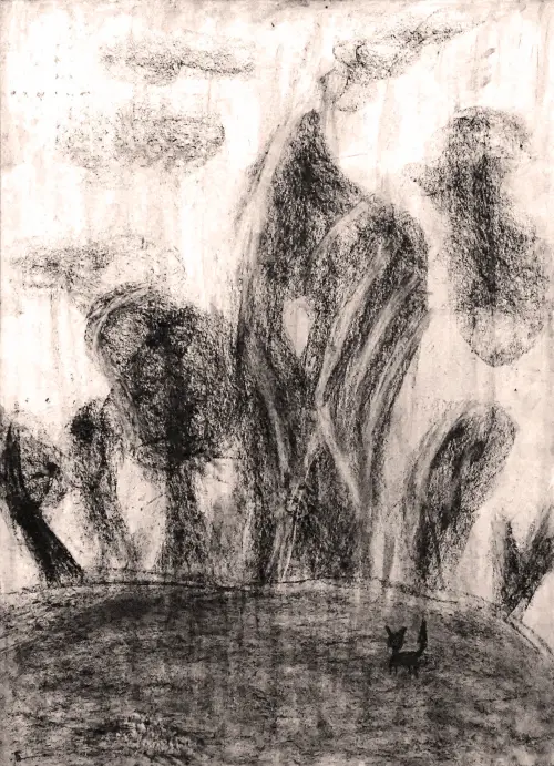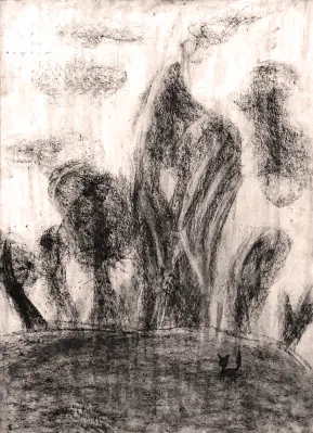 Я очень часто выхожу с подругой на прогулку в свой любимый парк. Он очень большой, и мы всегда находим красивые места. Эту работу я сделала на пленэрных занятиях со студией «Форма». Я была очень рада, что пленэр состоялся в моём любимом-любимом парке! Я пыталась подчеркнуть необычность деревьев: какие они они все разные и с густыми листьями. Летом здесь очень-очень красиво! Ольга Феодосьевна мне подсказала изобразить кошку, так, на сравнении, можно увидеть какие большие и прекрасные деревья у нас в парке!