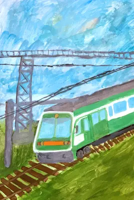 Есть в Москве старинные, тихие районы, а есть и шумные, индустриальные. Вот и на этой работе автор выбрал для сюжета электричку, которая мчится по своему маршруту.