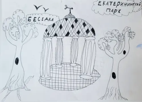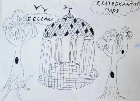 В нашем любимом Екатерининском парке много мест, где мы с сестрой играем. Нам очень нравится играть на площадках и рядом с прудом. В парке много красивых беседок. Мы часто там играем и прячемся от дождя.