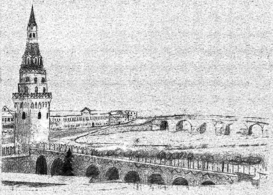 На моей картине изображена старинная панорама Кремля с видом на Водовзводную башню.