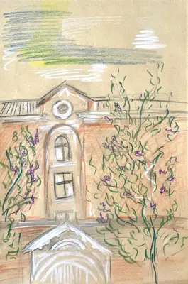 Гуляя по району с моей тётей, мы рисовали этюды домов, которые нам нравятся. Мне запомнились окна дома Немецкой слободы и сирень, которая расцвела рядом с домами.