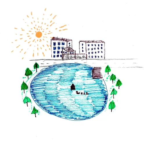 Любимый пруд в моем районе. Очень часто проводим там время, смотрим на семейство уточек которое там плавает. У них есть свой домик. Рядом есть скамейки и причал.