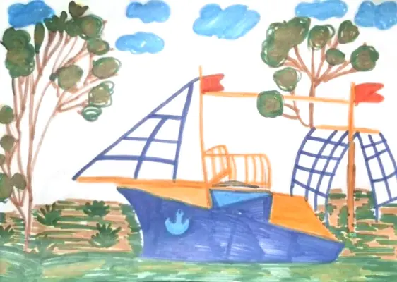 Когда гуляем с мамой на этой площадке, люблю забираться в лодочку, представлять себе, как я плыву по реке и путешествую по разным местам нашей большой Родины.
