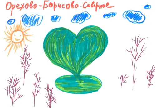 Я люблю свой район. У нас недалеко от дома есть детская площадка, там есть фигурки. Одна из них - сердечко. Оно мне очень нравится, и я решила его нарисовать.