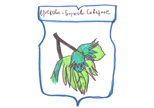 Я люблю свой район, поэтому нарисовал герб нашего района. Он очень зелёный, чистый. Мы с друзьями и одноклассниками любим тут гулять. Нам в школе рассказывали историю нашего района.