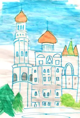 Мне нравится посещать храм, в который мы ходим вместе со моим братом по праздникам и выходным дням. Поэтому мне очень захотелось нарисовать этот храм и отправить на конкурс.