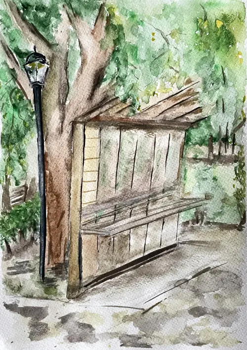 Работа выполнена в парке имени Святослава Фёдорова у аллеи фонтанов. Рисую с трех лет. Рисование-это занятие, которое наполняет мою жизнь только положительными эмоциями. Обучаюсь в художественной студии «АВАНГАРД» Бескудниковского района.