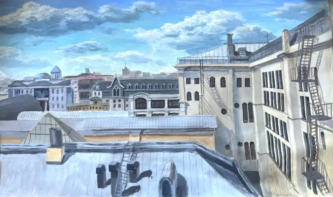 Работа архивная, но очень хочется поделиться. Рисовала по фото в 2017 году, когда первый раз попала в МАРХИ в День открытых дверей.
