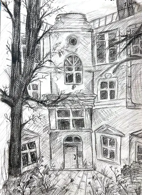 Воздух наполнен лишь шелестом листвы — старые клёны и липы, растущие вдоль забора, мягко покачиваются на ветру. Изредка доносится щебетание воробьёв, да ленивое жужжание пчелы над цветущим клевером. Даже шаги по выложенной плитке дорожке звучат приглушённо, словно двор обволакивает каждого мягким умиротворением.