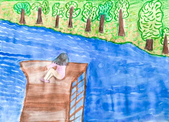 Мне 7 лет. Живу в Строгино. Люблю гулять с мамой и папой у реки. Чистый воздух, можно посидеть у воды и помечтать. Строгино очень красивый район. Нам здесь очень нравится.