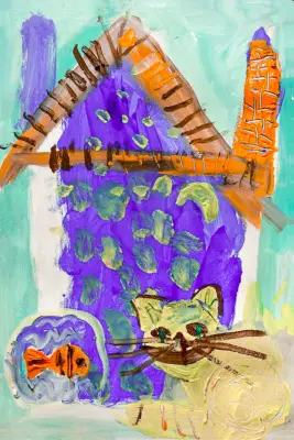 На моем рисунке я нарисовала свою любимую кошечку, рыбок в аквариуме. Моя кошечка очень любит сидеть на окошке и смотреть на прохожих, а также на проезжающие машины.