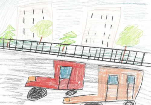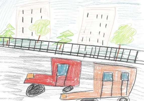Я решил нарисовать проспект Мира. Он очень большой и там постоянно много машинок. Мне нравиться наблюдать за тем, как по нему ездят автобусы и другие дорожные средства