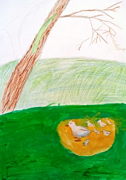 Рядом с нами есть красивый спортивный парк. Мы часто там гуляем. Там есть речка и в ней плавают утки. Мы часто кормили их там. Вчера мы гуляли там и видели утку с маленькими утятами
