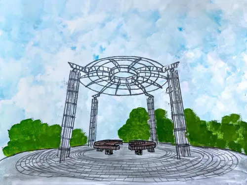 У нас в районе Куркино много парков. Когда мы были с братом маленькие, то наша няня водила нас во все эти парки гулять. Парк "Четыре стихии" очень необычный, поэтому я и решил нарисовать беседку, которая находится на самой вершине горы.