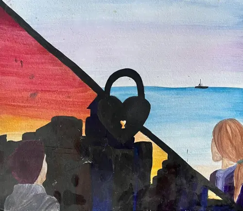 Северное Тушино - мой любимый район! Нет ничего лучше, чем летом пойти с друзьями на вечернюю прогулку и пикник в парк «Северное Тушино». На своём рисунке я изобразила то, как девушка, находясь за тысячи километров от дома, всё равно вспоминает свой район и его простую, родную красоту.